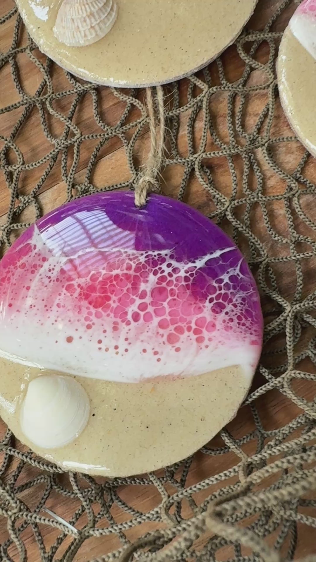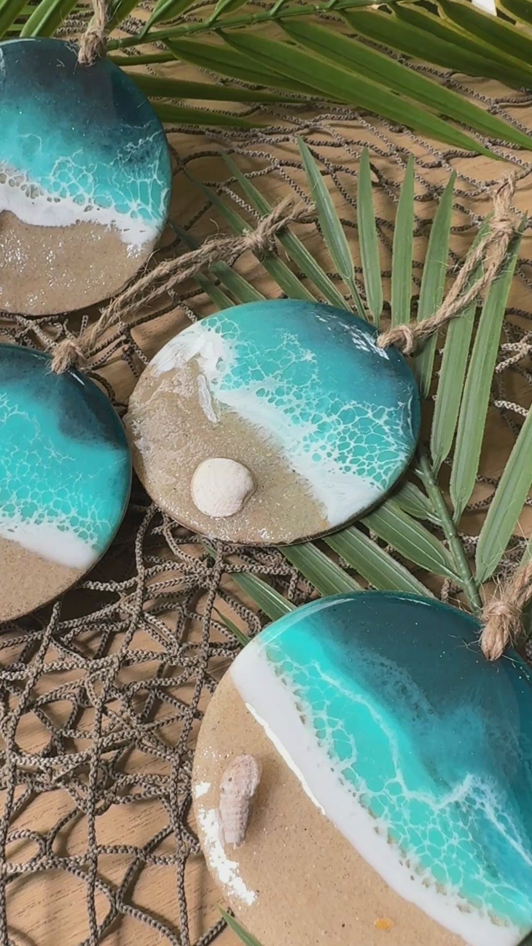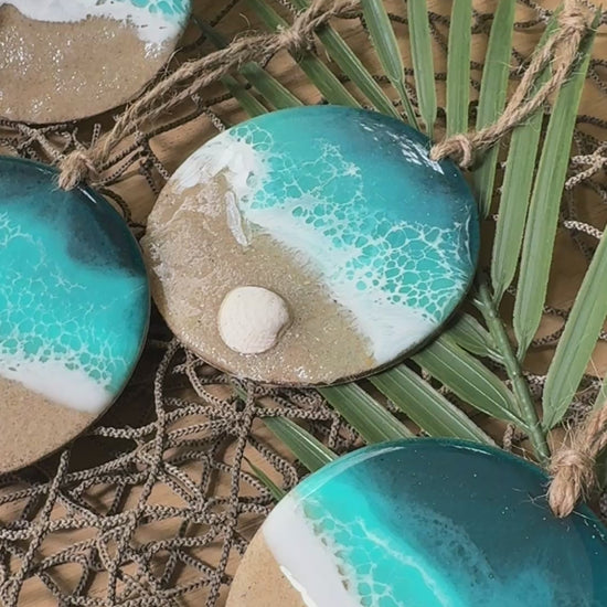 These ornaments are reminiscent of the beautiful beach. The ornaments are designed with epoxy resin waves, real sand, and shells found along the Gulf Coast! Please note, while all our ornaments are the same size, the exact shades of color may vary. If you see an ornament you see in the pictures, please feel free to mention it in the notes section, and I will do my best to accommodate your request, although I cannot guarantee it.