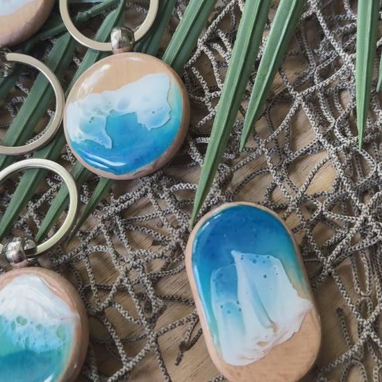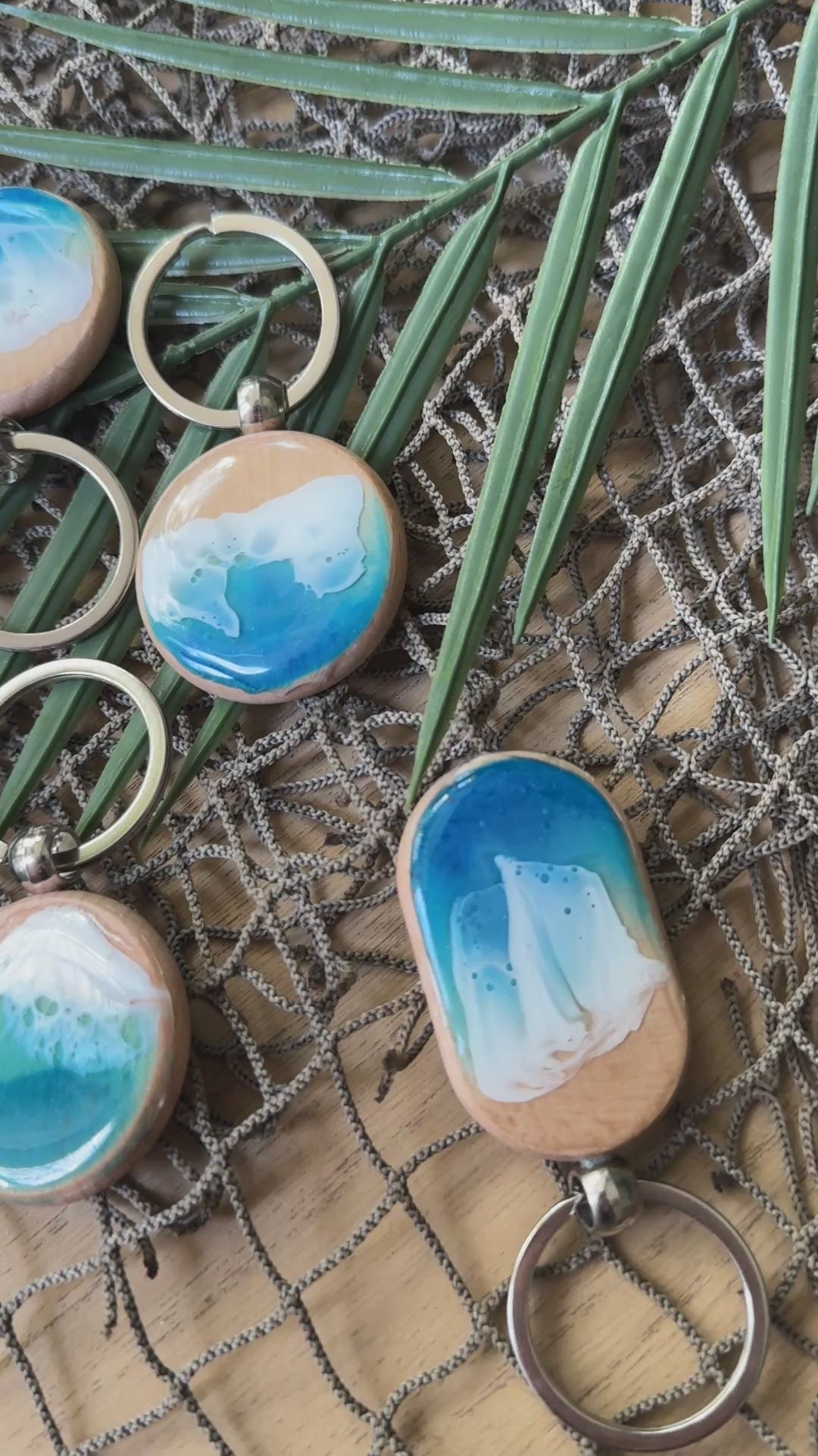 Bring a piece of the beach with you with these resin wave keychains! They are created using epoxy resin in shades of blue, purple, and pink. Choose between round blue waves or square pink and purple waves.