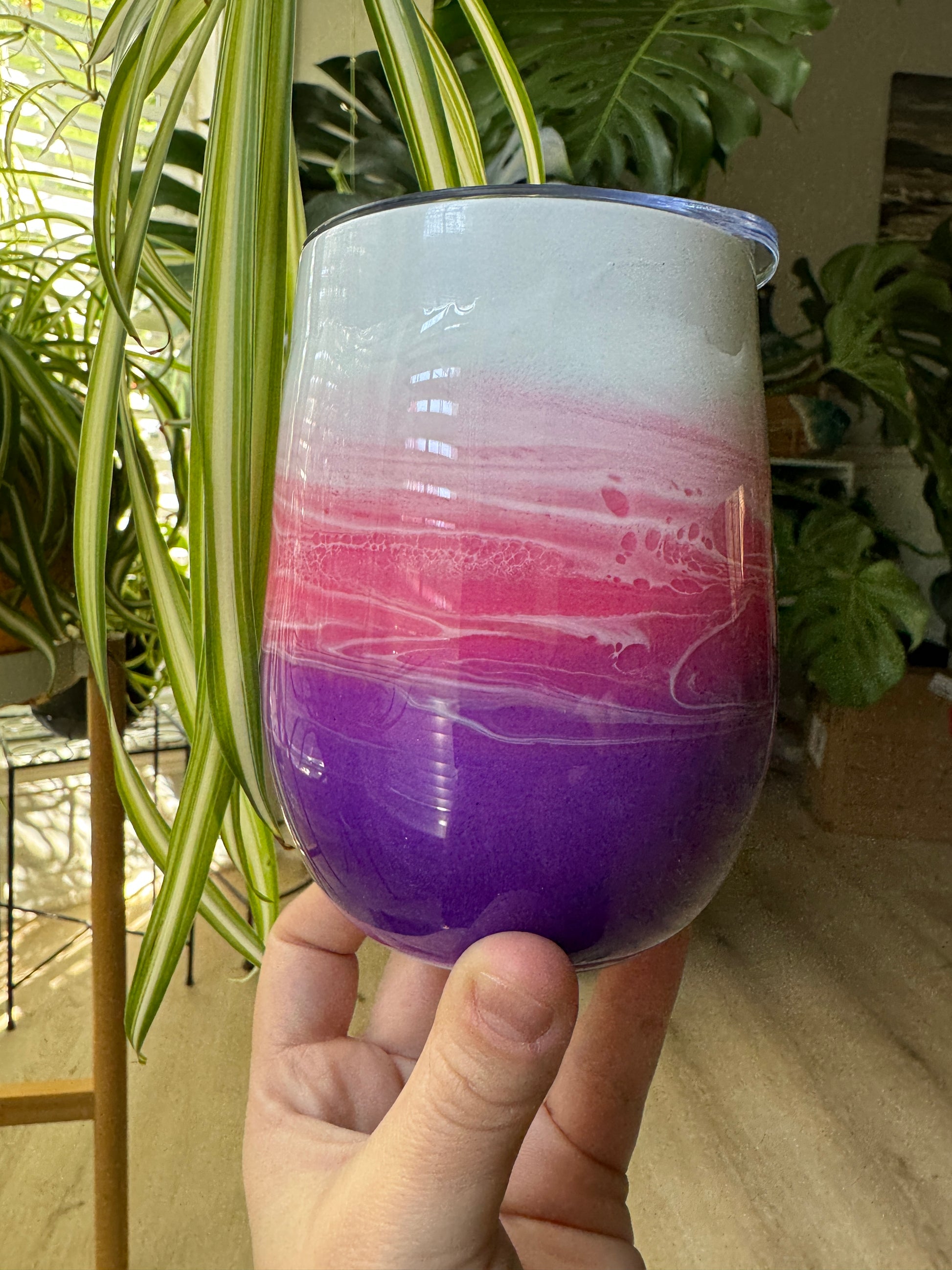 Enjoy your favorite hot or cold beverages wherever you are with this 12oz. Stainless Steel Wine Tumbler. It features a lid to prevent spills, making it an ideal addition to your picnic and travel accessories. The tumbler is beautifully crafted with waves using epoxy resin, bringing the tranquility of the ocean into your home.