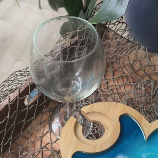 Blue Waves Appetizer board with wine glass holder