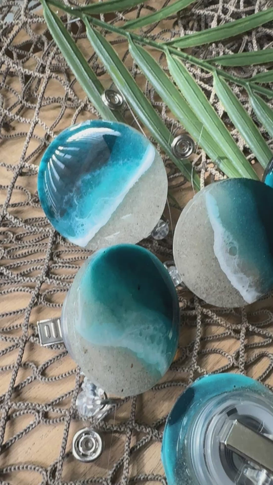 Add a touch of the ocean to your everyday essentials with these handmade retractable badge reels! Perfect for displaying your ID badge, these reels feature shades of blue reminiscent of calming ocean waters, making them both functional and stylish.