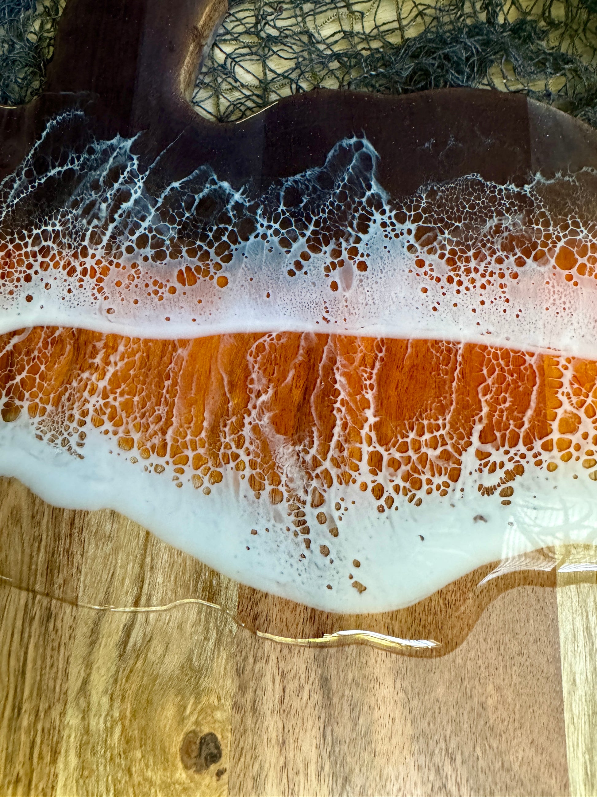 The highest quality epoxy resin is used and it is important to note that epoxy resin is sensitive to UV rays and can yellow over time. Avoid exposing it to direct sunlight to prevent any potential yellowing over time. It is also advisable to keep it away from heat sources.
