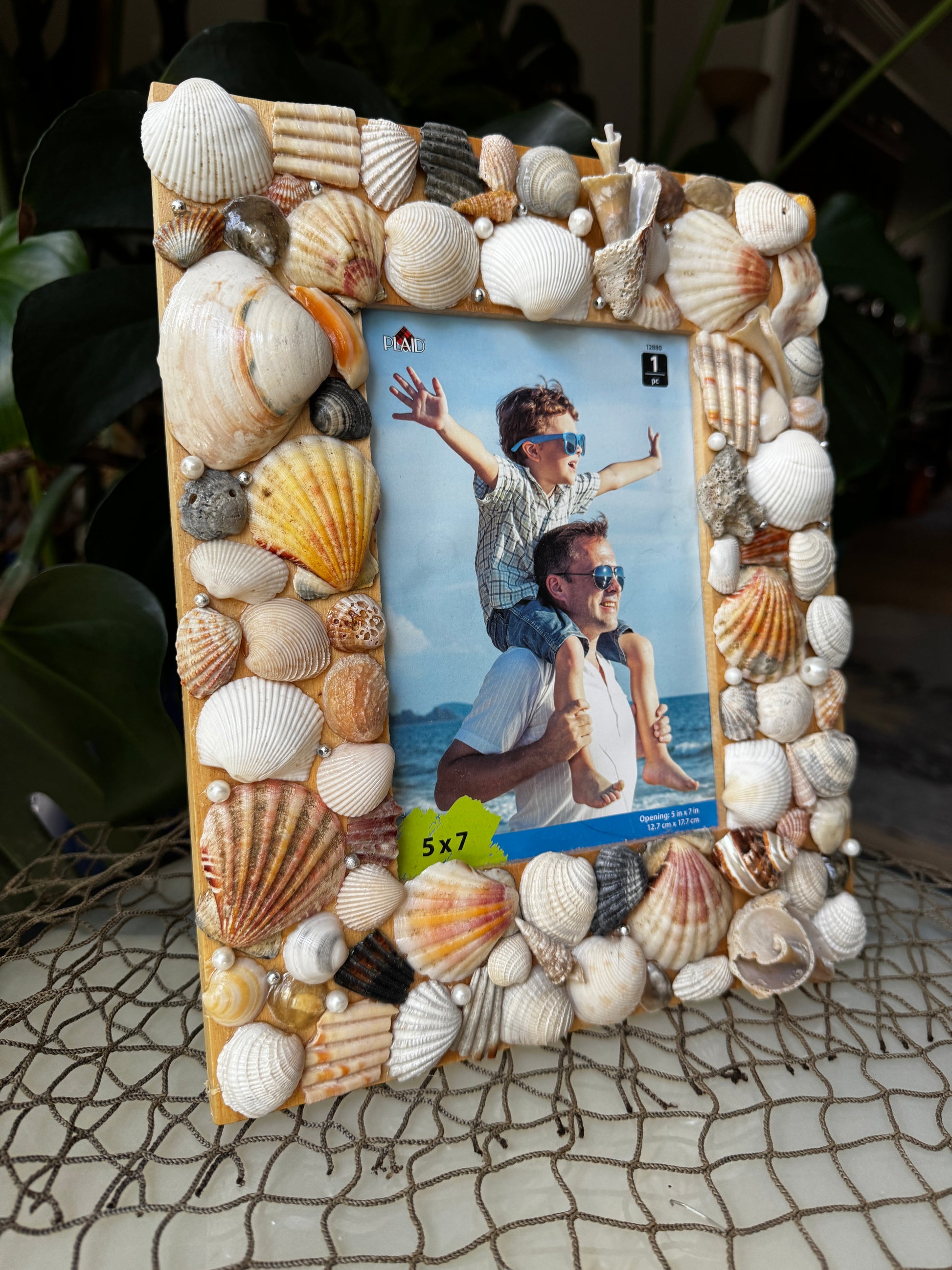 Bring the charm of the ocean into your home with this handmade seashell picture frame, crafted with real seashells for a beautiful coastal look. Each frame is a unique piece of art, perfect for beach lovers and those who cherish seaside memories.