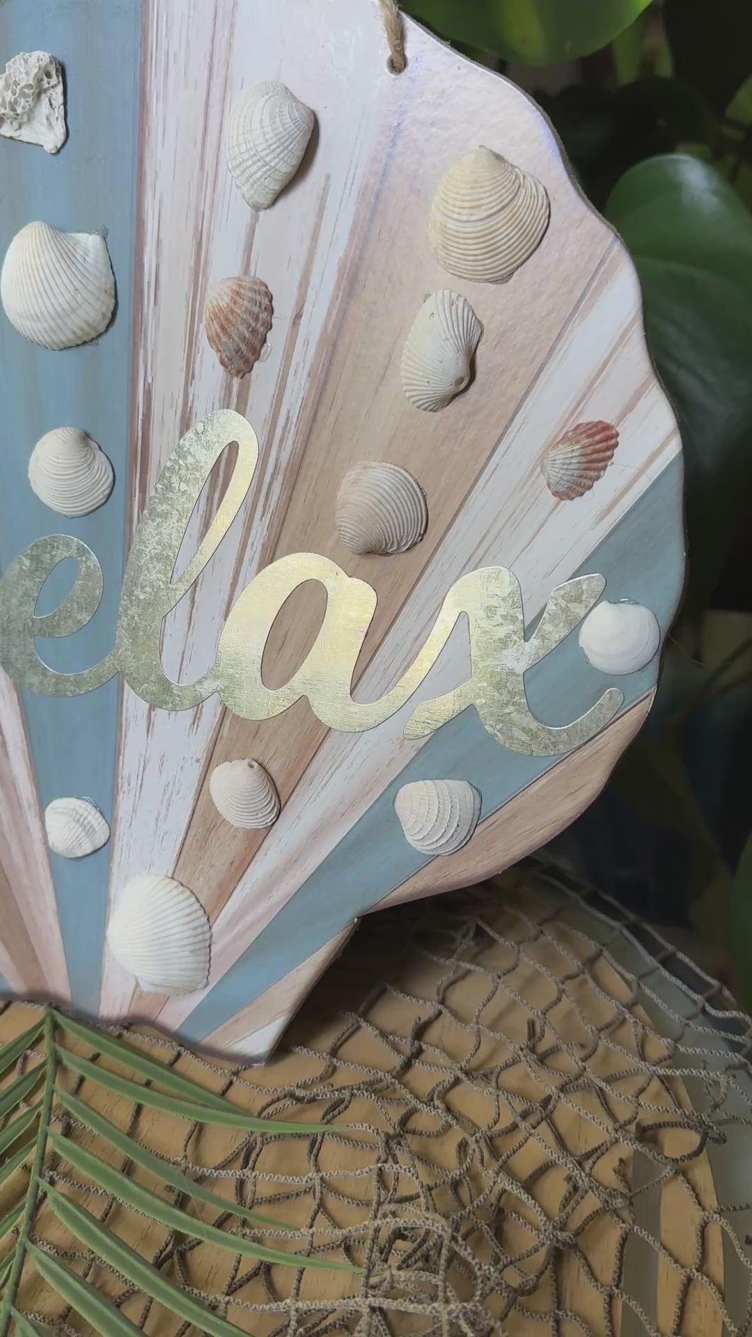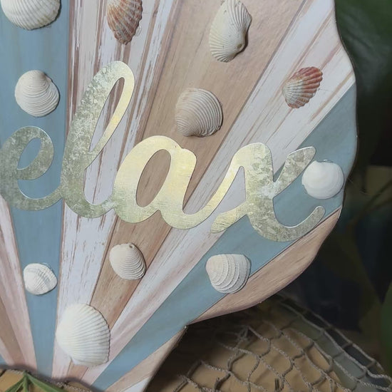 Relive the tranquility of the beach every day with our “Relax” sign embellished with shells found on the Gulf Coast!