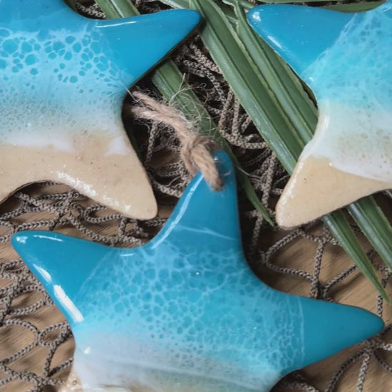 These ornaments are reminiscent of the beautiful beach. The ornaments are designed with epoxy resin waves, real sand, and shells found along the Gulf Coast! Please note, while all our ornaments are the same size, the exact shades of color may vary. If you there is an ornament you see in the pictures, please feel free to mention it in the notes section, and I will do my best to accommodate your request, although I cannot guarantee it.