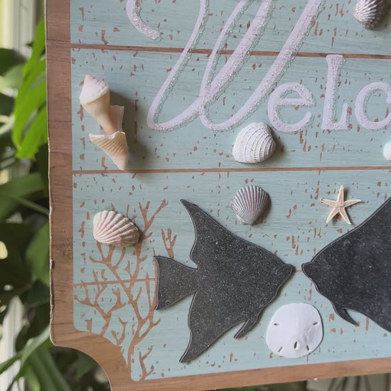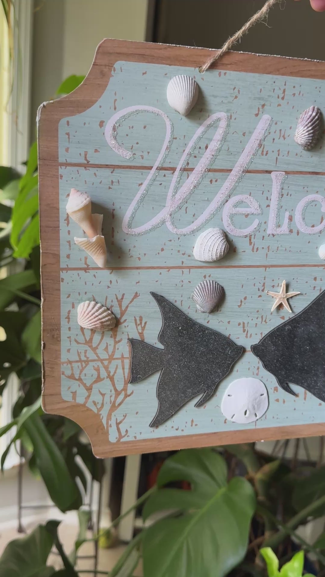 This sign has a minor imperfection - the left side has a small area of damage, which reflects the price for it. Other than that, it is perfect to hang in your home to relive the tranquility of the beach every day! The sign is embellished with shells found on the Gulf Coast!